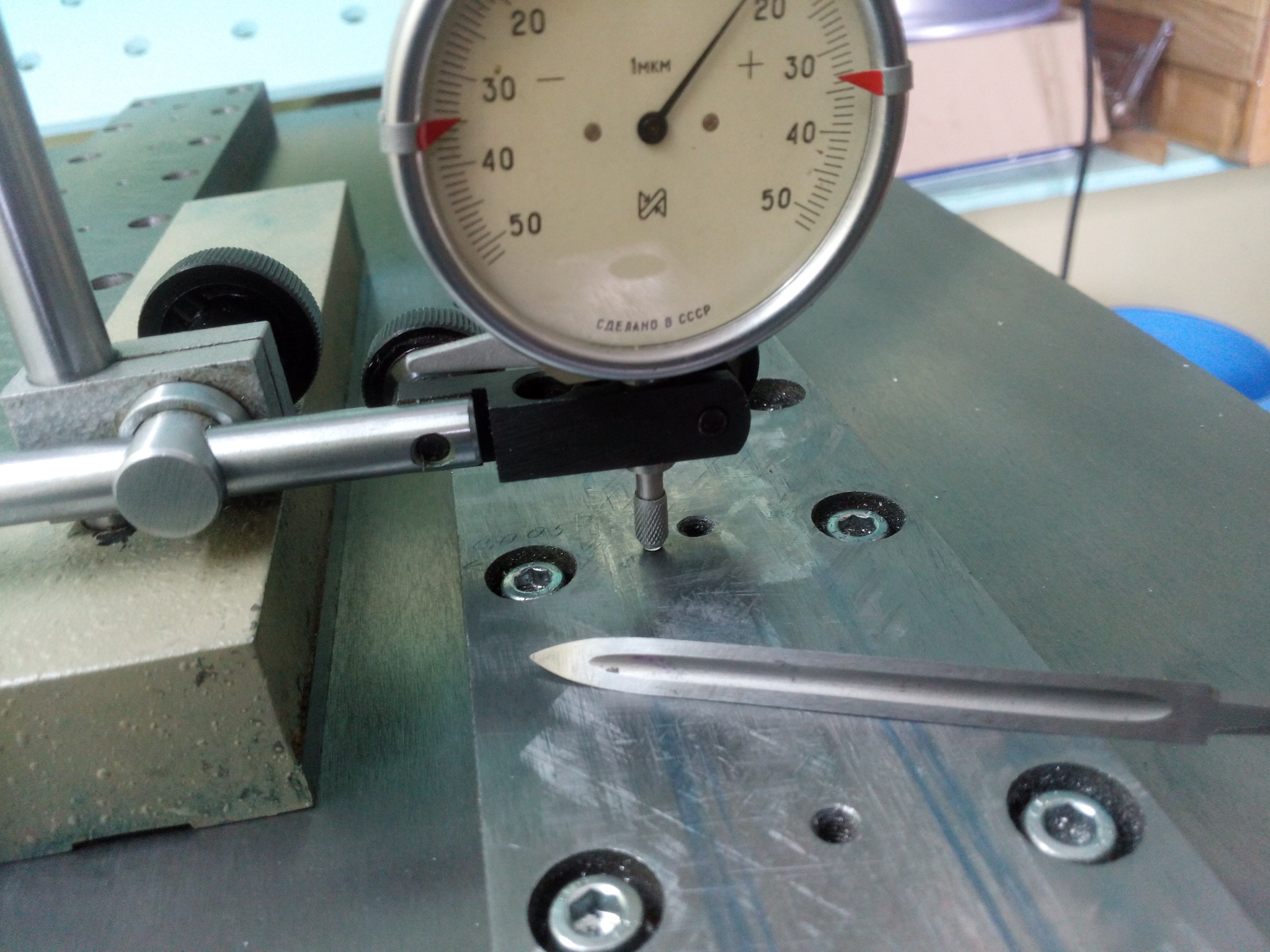 Второй этап, это отверстия под рельсы. Это самое осторожное место для работы с шабером. Может момент провалиться плоскость в цековке резьбы.