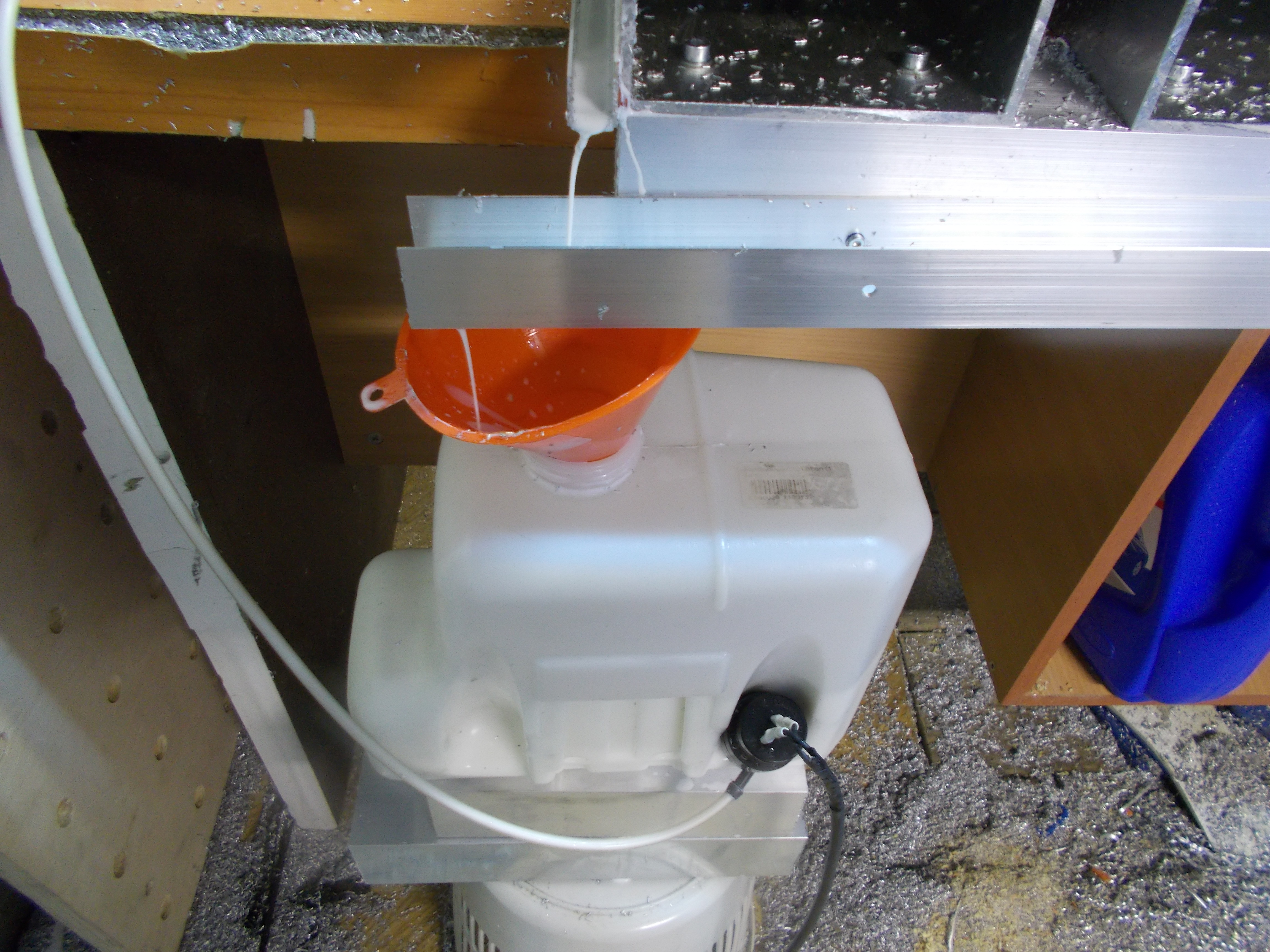 Обошлась бюджету примерно в 1000р и пару часов свободного времени. Теперь ненужно бегать с вёдрами вокруг станка