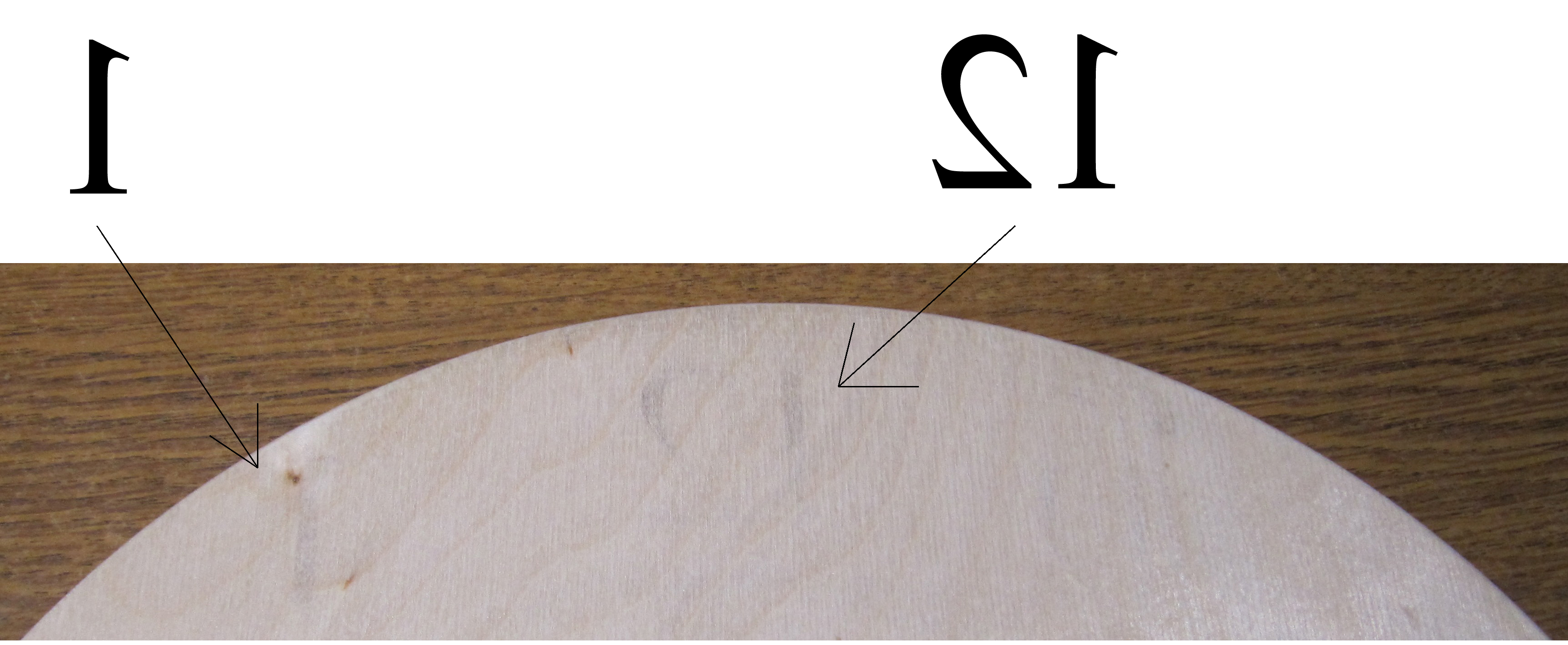 Каково же было мое удивление, когда на обратной стороне 3мм, 3-х слойной фанеры я обнаружил зеркальное отображение цифр с лицевой поверхности (1 12)! Это как? Фанера не прожжена насквозь, свет не просвечивает, а изображение есть? Изображение это не грязь и не сошкуривается!