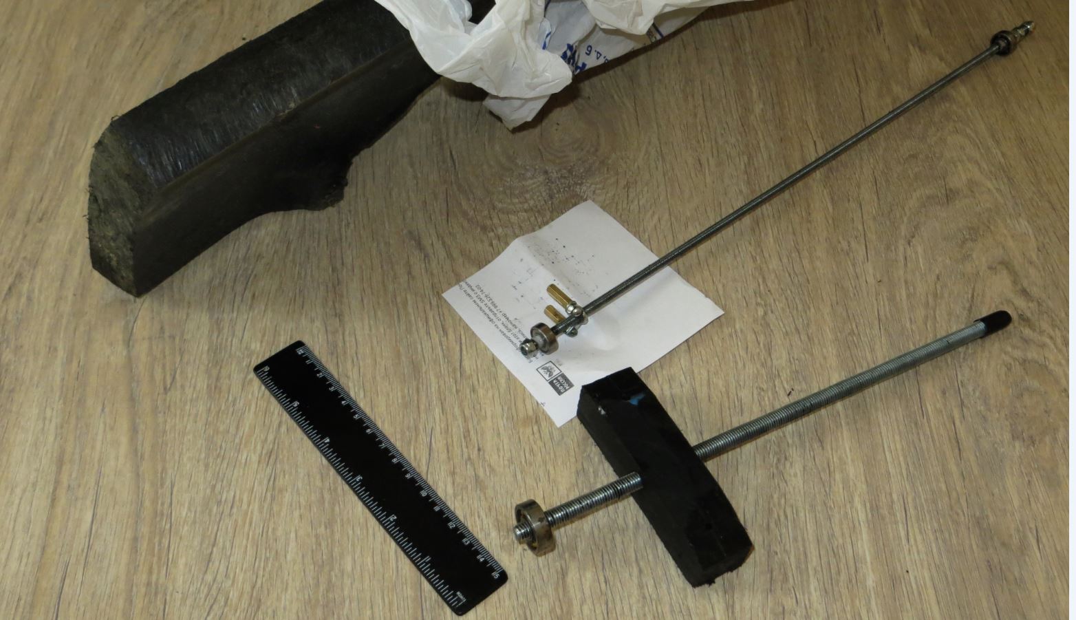1. Уголок (стандартный 50*50 мм, ширина 35 мм, из железа 1,2 мм толщиной) с отверстием 10-12 мм по центру площадки, где крепится ведущая гайка, примеряется по месту и намечается центр ведущей оси - из шпильки 8 мм.