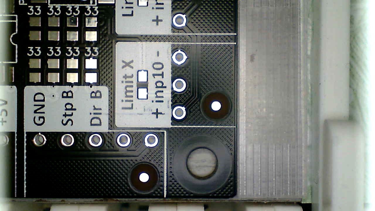 Сейчас поиск реперных точек есть (только двух, для определения наклона платы и масштабирования), но в реальности его использовать не удается из за плохого алгоритма распознавания точек.