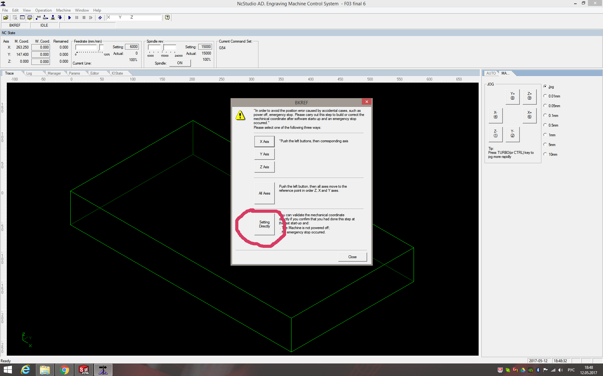 Без датчиков дома наверное ни как. Вкладка не активна, хотя иногда бывает но это возможно из за того, что в этом сеансе уже принимал раз базы по датчикам.Силвер писал(а):Как меняется машинный ноль? Хом и датчиков пока неи никаких. Оси поставил на край. И на экране хочу их обнулить. То есть станичный ноль установить.