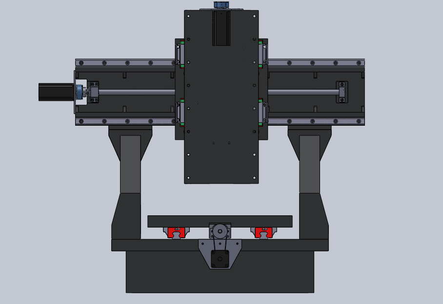 Дык а че указывать - вам уже все описали, вы продолжаете по своему. скажите - зачем одна ось через ремень приводится а две напрямую ? почему не развернуть мотор привода оси с ремнем и не убрать его за портал ? уменьшив габарит станка и убрав торчащий мотор ? почему не развернуть и не опустить мотор вертикальной оси и поставить так же шкив с ремнем, убрав мотор за портал ? почему не развернуть так же и не убрать под плиту мотор продольной оси ??? нафиг нужны вот эти торчащие моторы ?