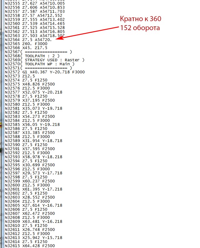 Обработка спиралью закончилась на A54720 что, по сути, и есть нулём. Далее тривиальная обработка растром. Зэдка прыгает только на высоту безопасности.