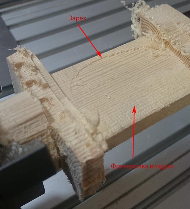 При доработочных траекториях на поворотной оси, ось "А" немного уходит в "плюс" и траектории не совпадают. С одной стороны фрезеруется воздух, с другой происходит небольшой зарез.