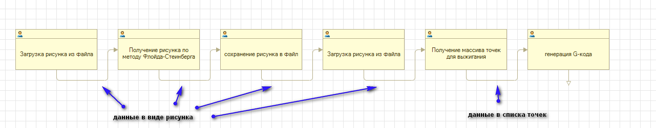 Перевод изображения в точки у меня состоит из 3-х этапов, вначале изображение масштабируется так, что-бы 1 пиксель был равен одной точке.