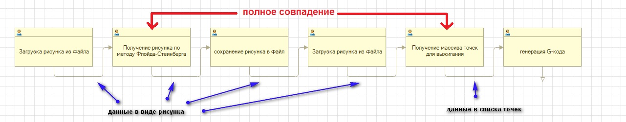 Т.к. при размере изображения 10х10 мм. и размере лазерной точки 1 мм, получается новый рисунок 10х10 пикселей.