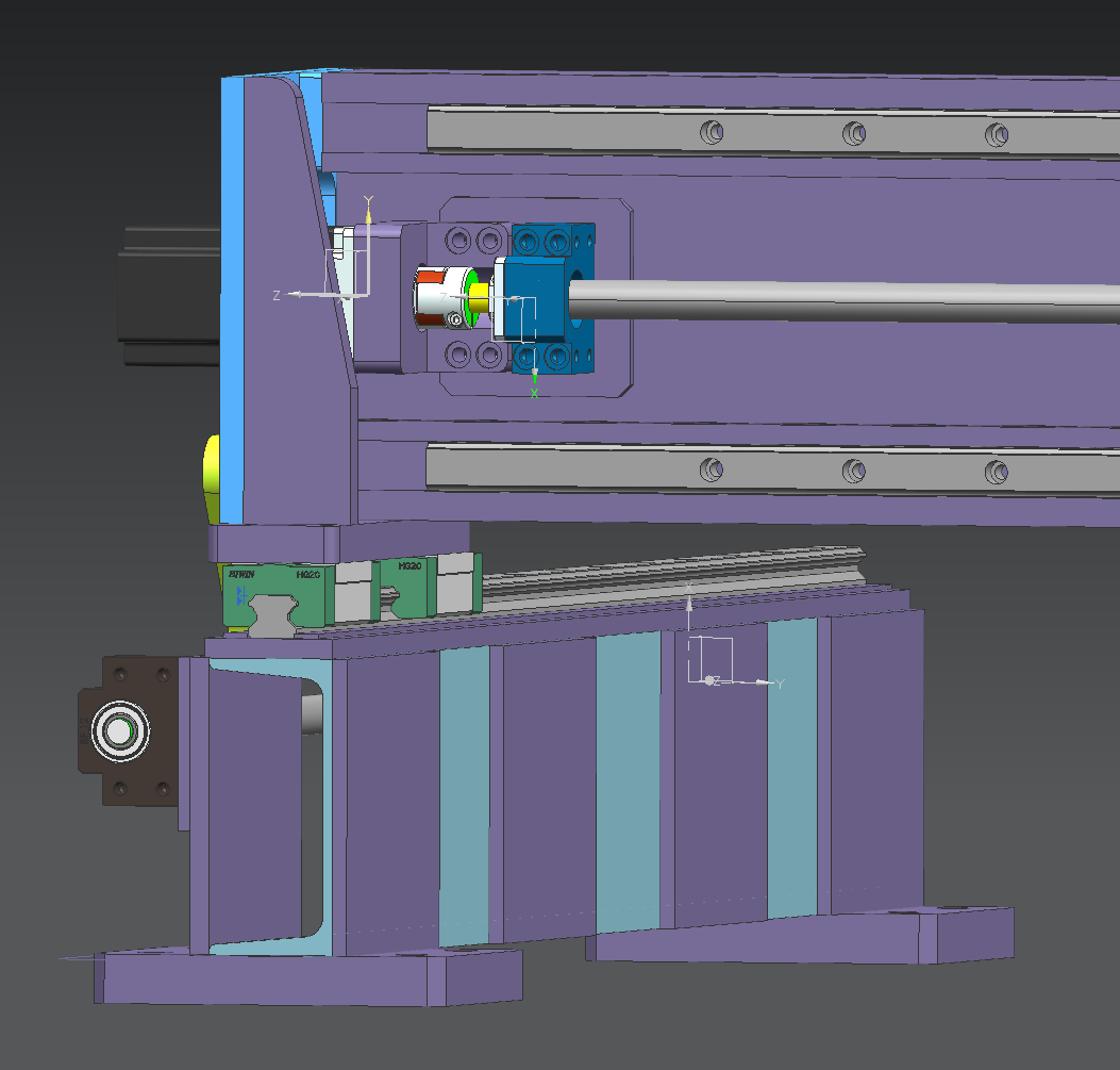 Может, попробовать как-нибудь винт над рельсой через стойки портала пустить, чем такой консольный поводок?