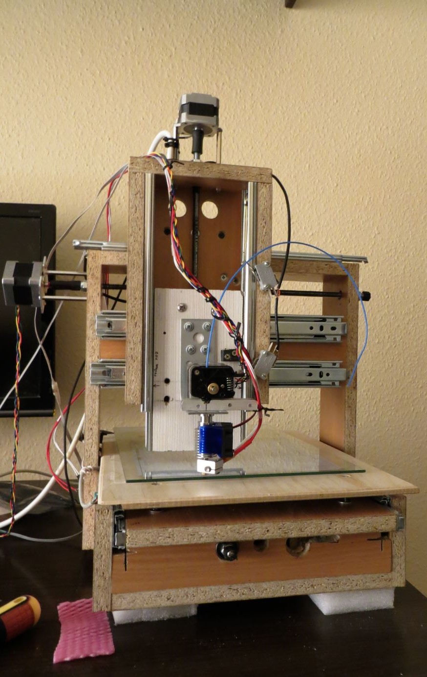 Тут прочитал "крик души" одного самодельшика 3d - у него точность на мебельных направляющих выше , чем на собранном позже принтере на рельсах. После этого я и отложил проект на рельсах и решил переделать фрезер. Хотя ось Z уже стала ездить - но с закусами, а вся конструкция (без монтажа боковин и задней панели из ЛДСП) жутко хлипкая, после монтажа - жутко неудобная для настройки - короче вариант по жизни -неработоспособный и лучше наверное повторять проверенные конструктивы. Но они, блин, все базируются на множестве деталей напечатанных на принтере - то есть надо делать что-то печатающее, а потом уже делать нормальный принтер по проверенной схеме.