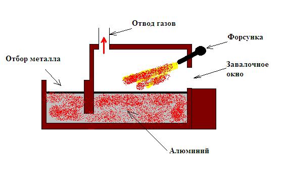 Может взять кислородный балон срезать половину заварить в месте среза, сделать отверстие для горелки, отверстие для выхода газов, затвор для слива расплавленного АЛ и люк для загрузки АЛ. :freak: