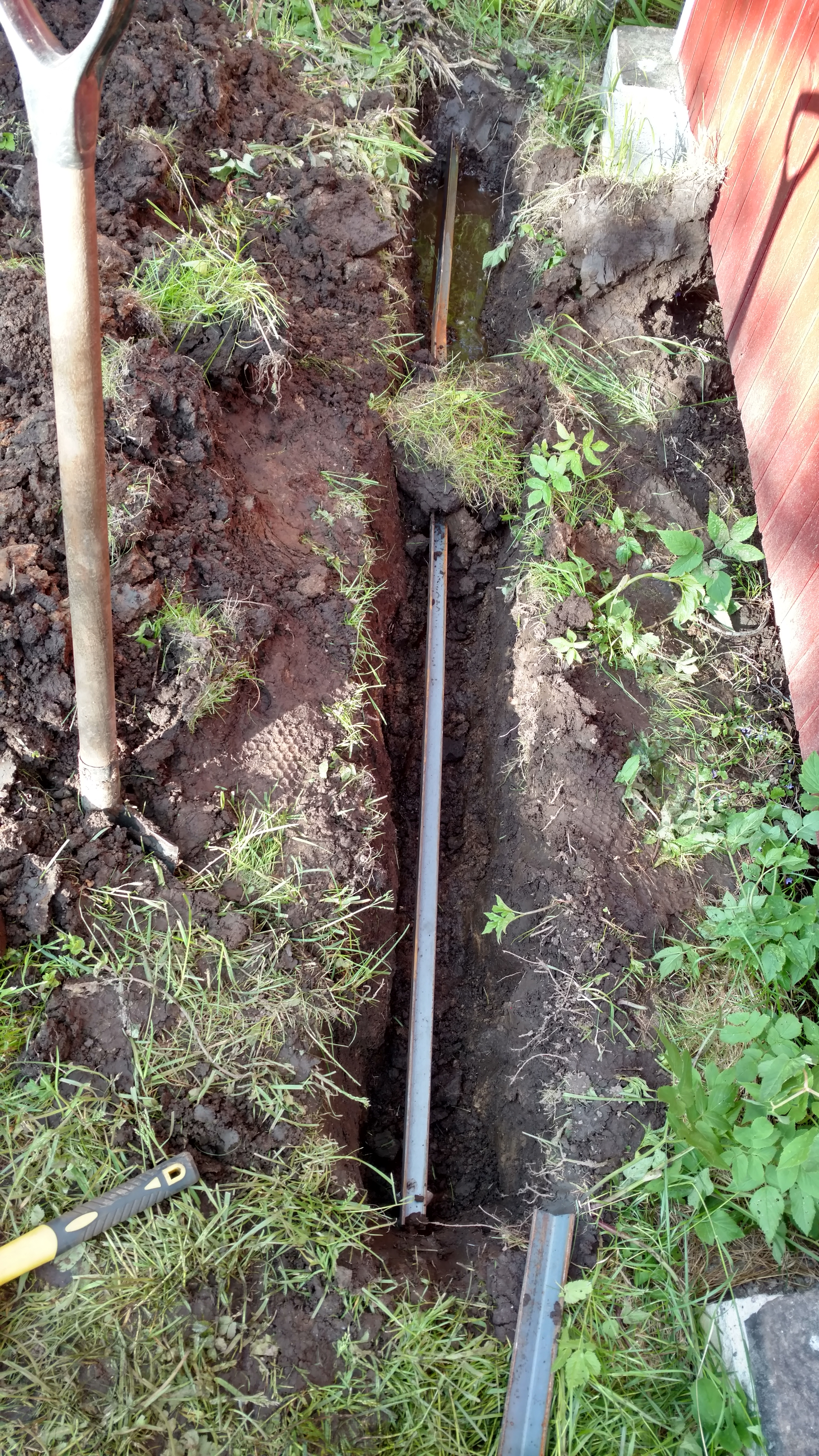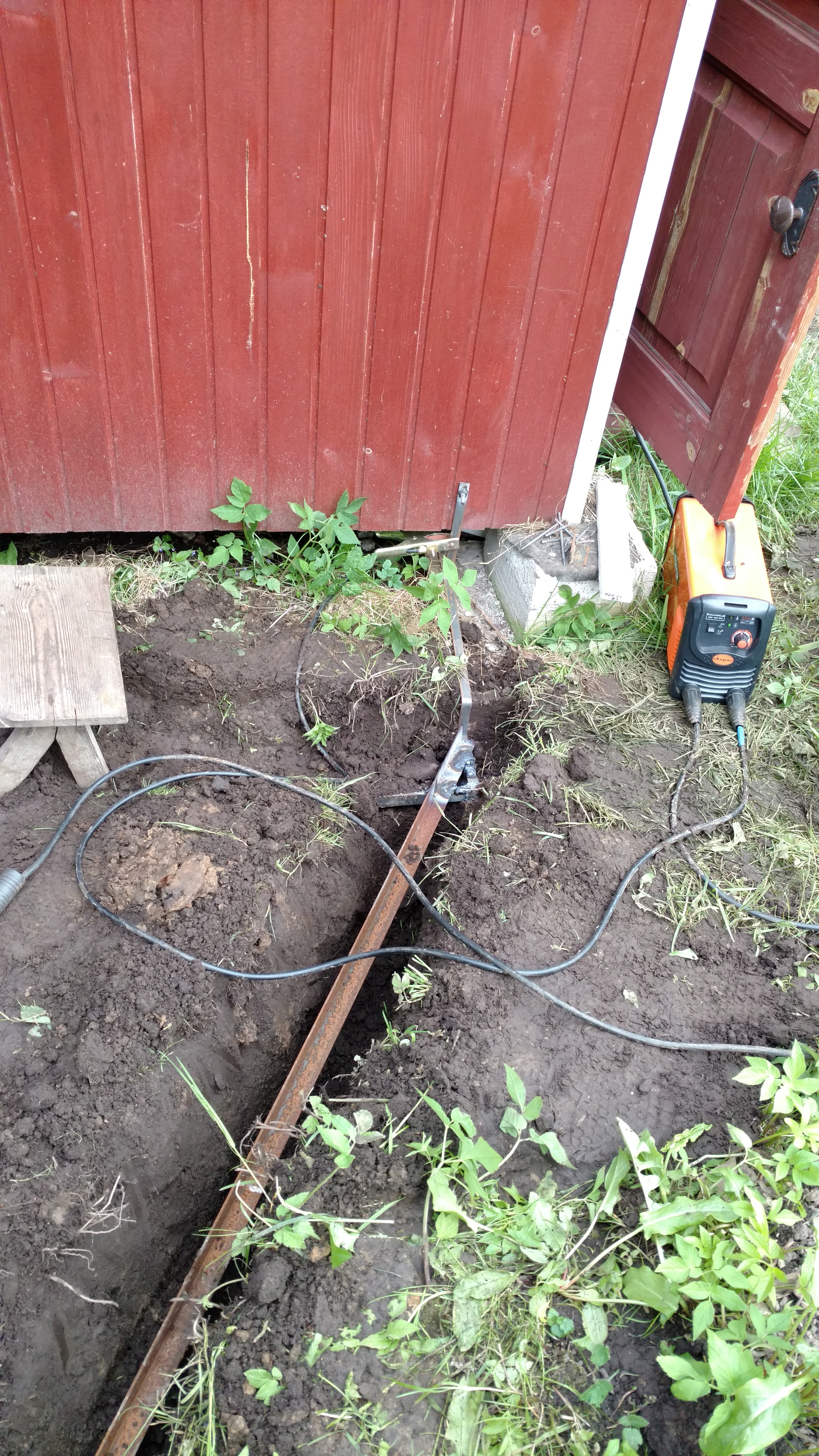 Сегодня почти весь день делал заземление. Вбил в землю 3 уголка 32*32*4 длиной 2,5 метра, соединил и между собой таким же уголком, все обварил, пустил провод в сарай.