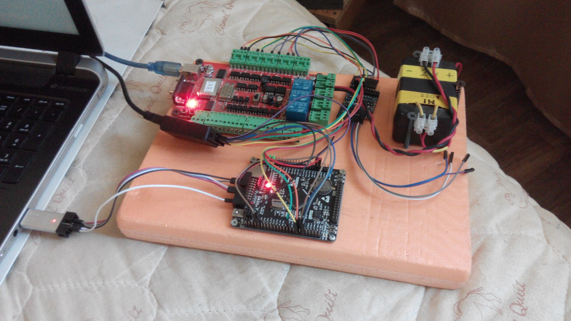 Сейчас он умножает правильно и вывод стал более плавный. Чуть позже протестирую 4 оси, если всё будет ровно, пойду проверять на станке. Мож и видео удастся заснять. Правда, тестовый стенд с F407 разбирать не охота (на фото). Запилю версию на 4 оси для 2$ платки с STM32F103C8T6.