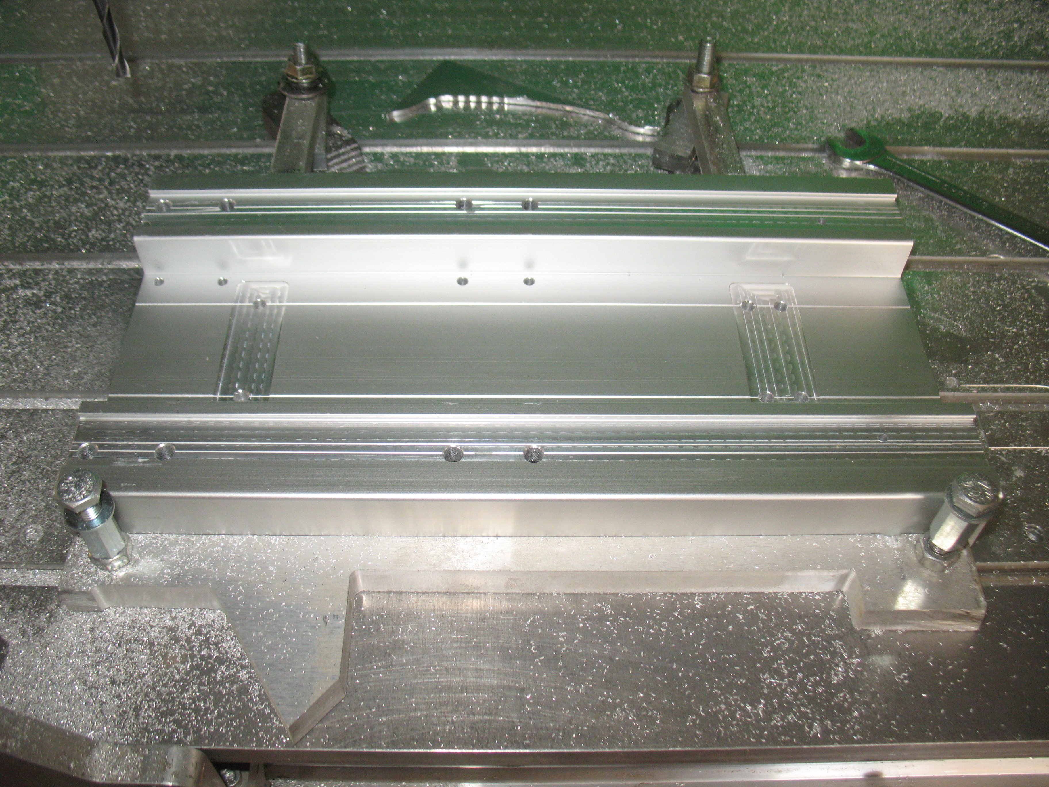 В принципе согласен с frezeryga, можно сделать установку на внутренней плоскости на шпаклю (на ту где крепить ШВП предполагается - площади достаточно, нужно только сделать установочный элемент который будет каждый раз в плоскость выгоняться). После можно и стандартным способом на спину закрепить если обрабатывать под ШВП только установочные площадки. Ну или на вакуумный стол если полностью фрезеровать. Если нет вакуумного стола, то можно со сменой захватов - сначала под ШВП прихватив за установочные под рельсы, затем под рельсы прихватив за нижнюю часть. Кстати можно еще один вариант второго установа - сделать специальные 2 прихватки и зажать внутри отверстия (надеюсь будет так понятно).