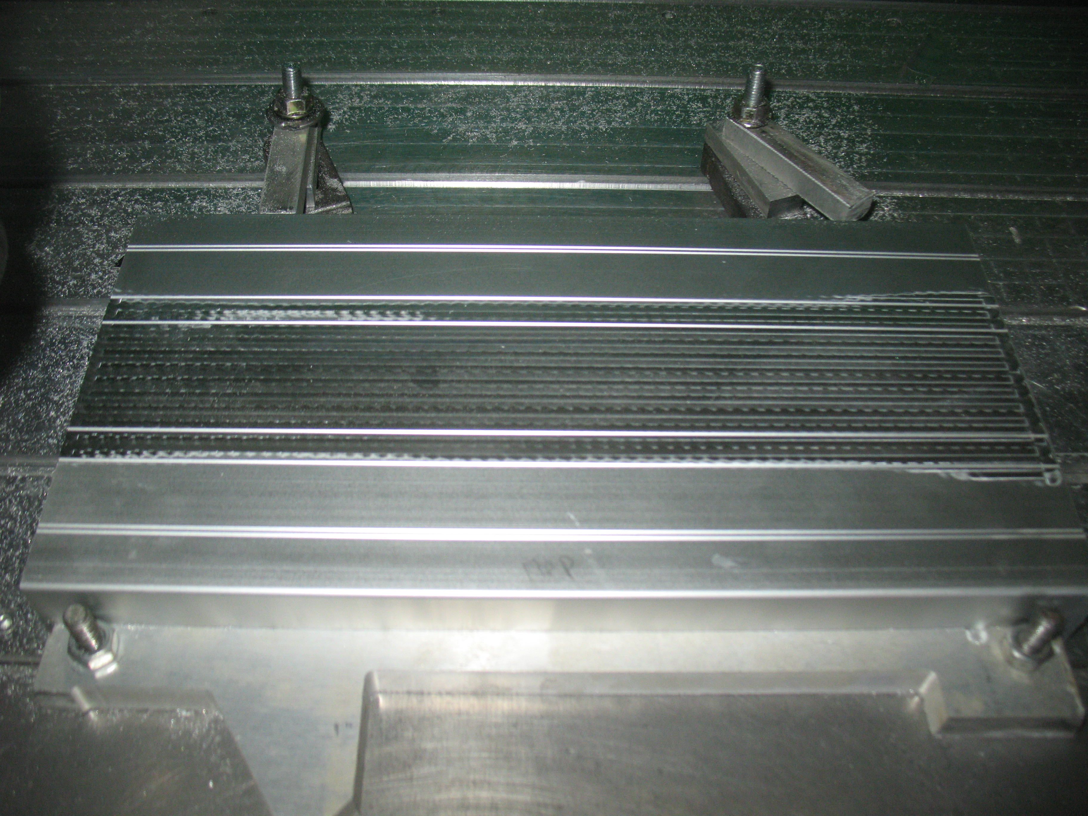 Пробовал в 3 прохода по 0,05 мм, фреза 6 мм. Получилось намного ровнее чем в первый раз с зажимами.
