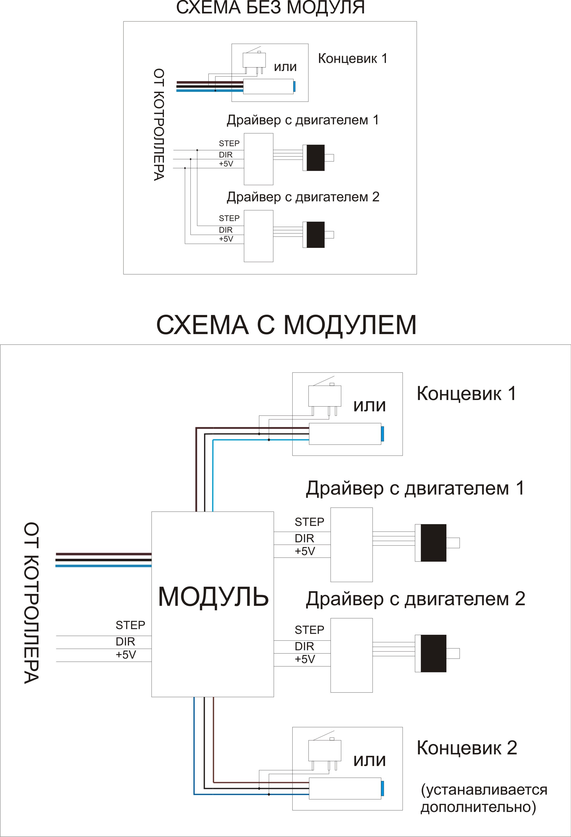 Сигналы STEP, DIR, +5В идут транзитом, т.е. они те же что и выходят с платы управления. И действительно - предлагаю решать проблемы в порядке их поступления. Есть интерес в покупке данного модуля - можно и решить вопрос с его подключением. Хотя на самом деле ни так уж и много "систем" подключения, особенно, если это хобби класс станков.