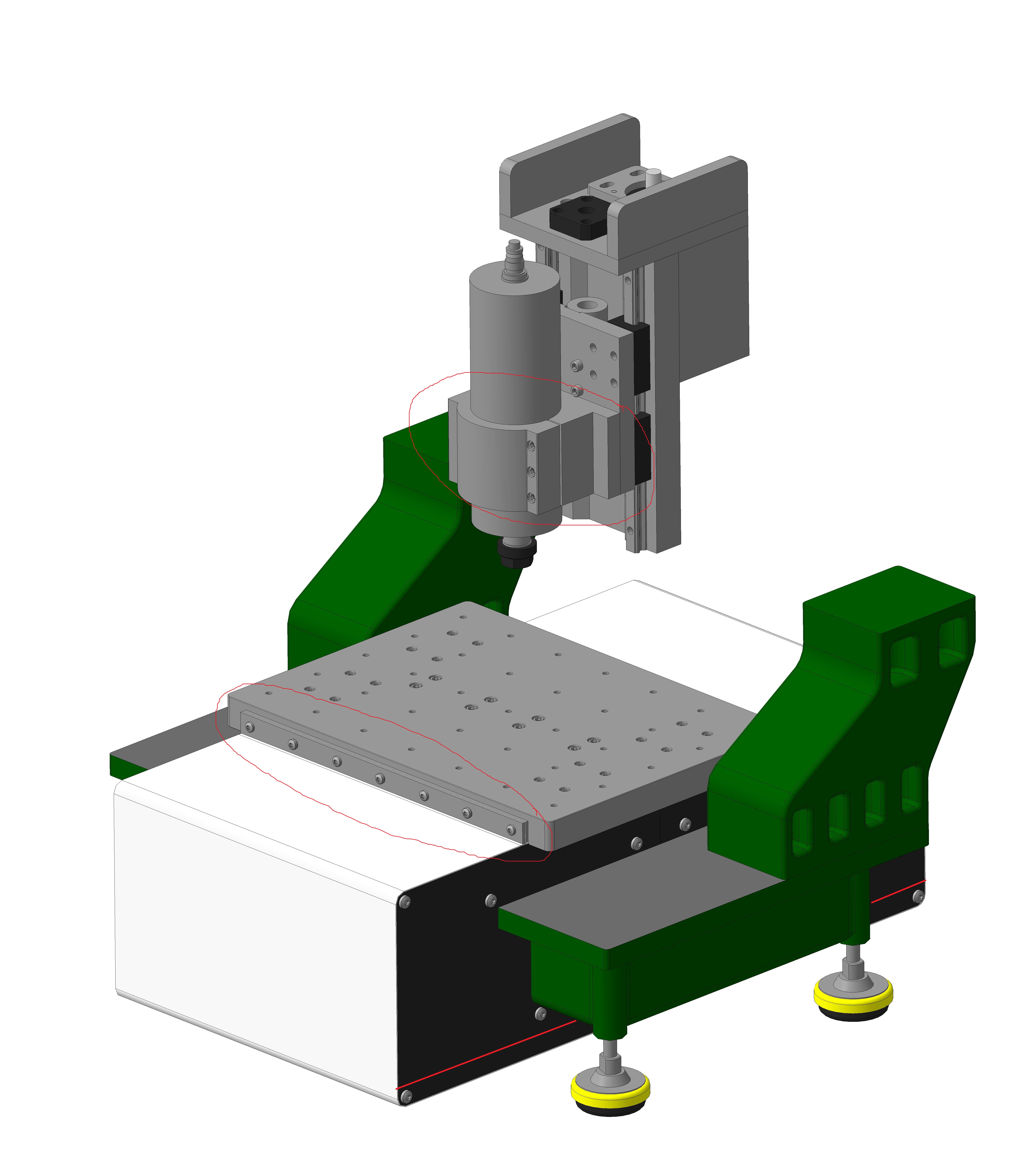 Советую заменить крепление шпинделя на самодельное, т.к. они такие говняные, что наверное самому можно качественнее сделать. Так же, могу предположить, что можно немного уменьшить защиту на пару "см", и утопить крепление ленты, чтобы на полоске не скапливалась стружка