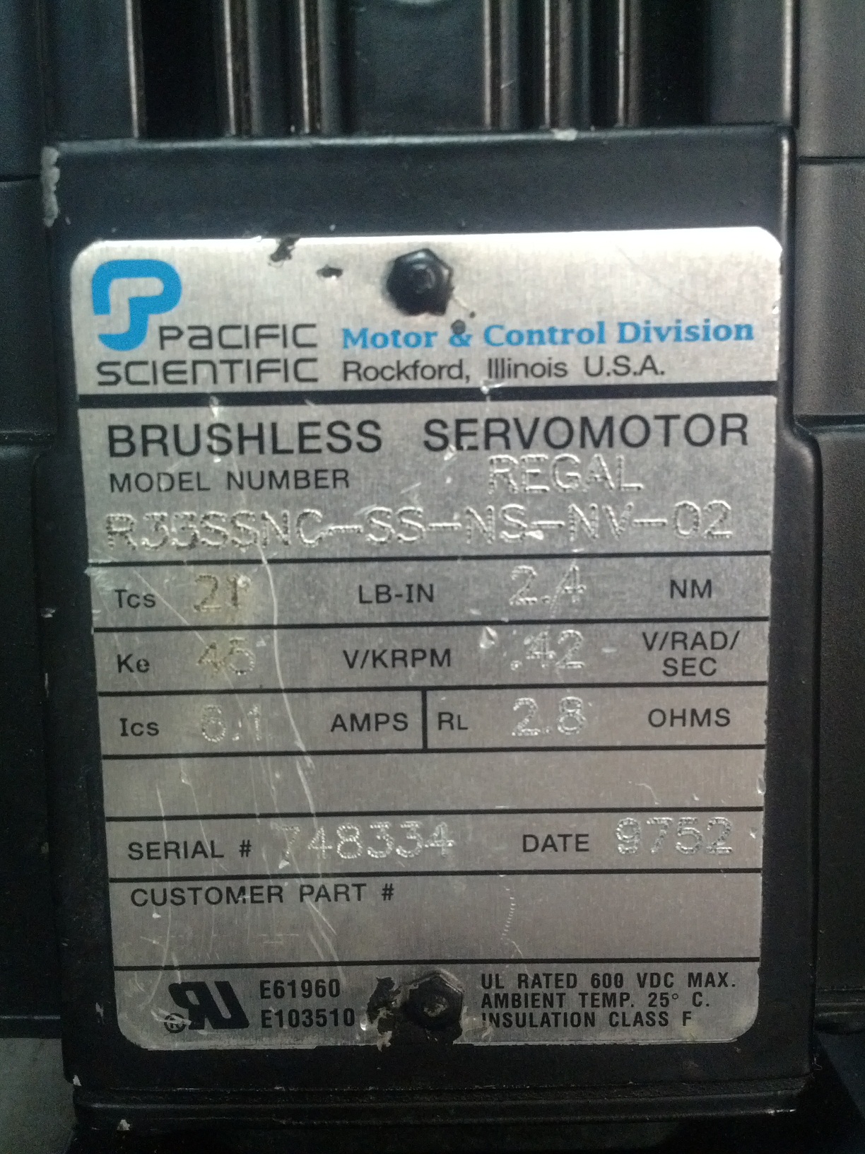 Синхронные сервы Pacific Scientific двух видов, с резольверами. 7,2 Нм и 4,3 Нм. Сервоусилители той же фирмы тоже двух видов, на 15А и на 30А; 3 фазы 230в. Заявленная мощность 4,5 кВт (9 в пике) и 2,5 кВт(5 в пике) соответственно. Сервы могут управляться как аналогом, так и степ/дир. Есть программируемые выходы эмулятора энкодера по сигналам резольвера.