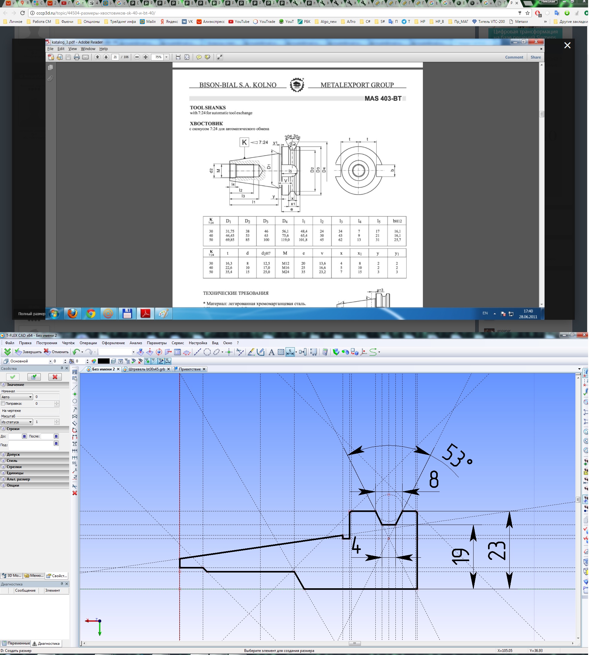 Я не про посадочный конус, там то я разобрался и там(на посадочном всё более менее понятно...) он 7;24 соответственно 8-17-50(16-35-40)aftaev писал(а):А с чего взял что там угол 60град? Там конусность 7:24Supermagnetto писал(а):не получается угол 60*