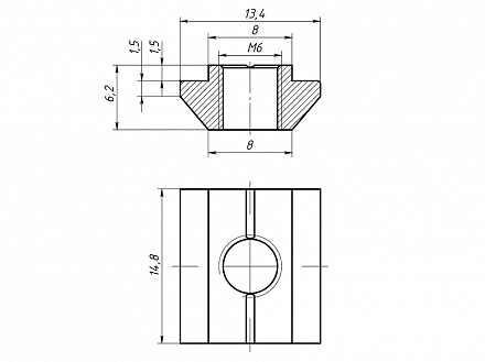 Сухарь пазовый М6, паз 8 - 18 шт.