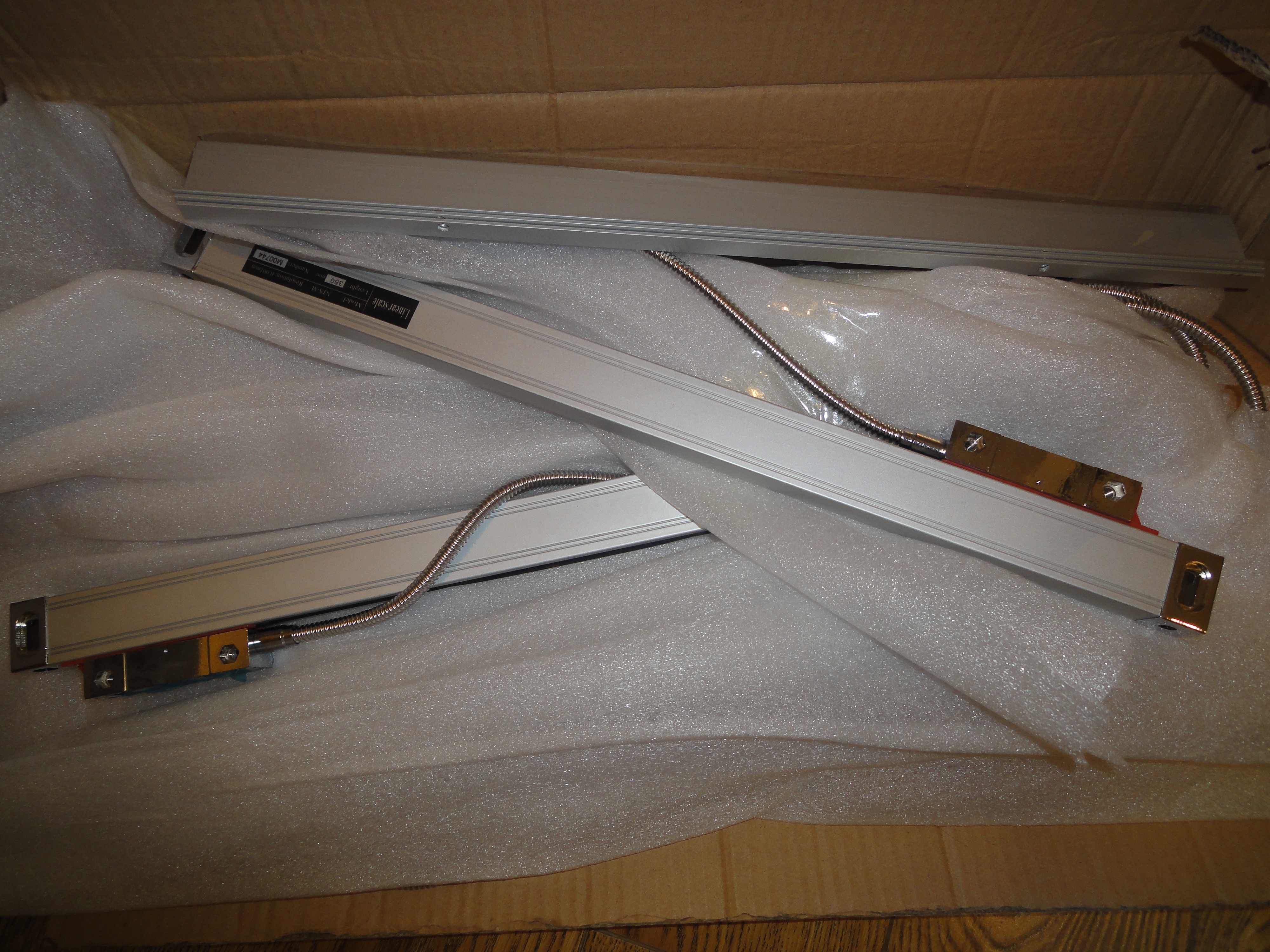 В наличии два комплекта 3-х координатных DRO и к ним есть линейки: