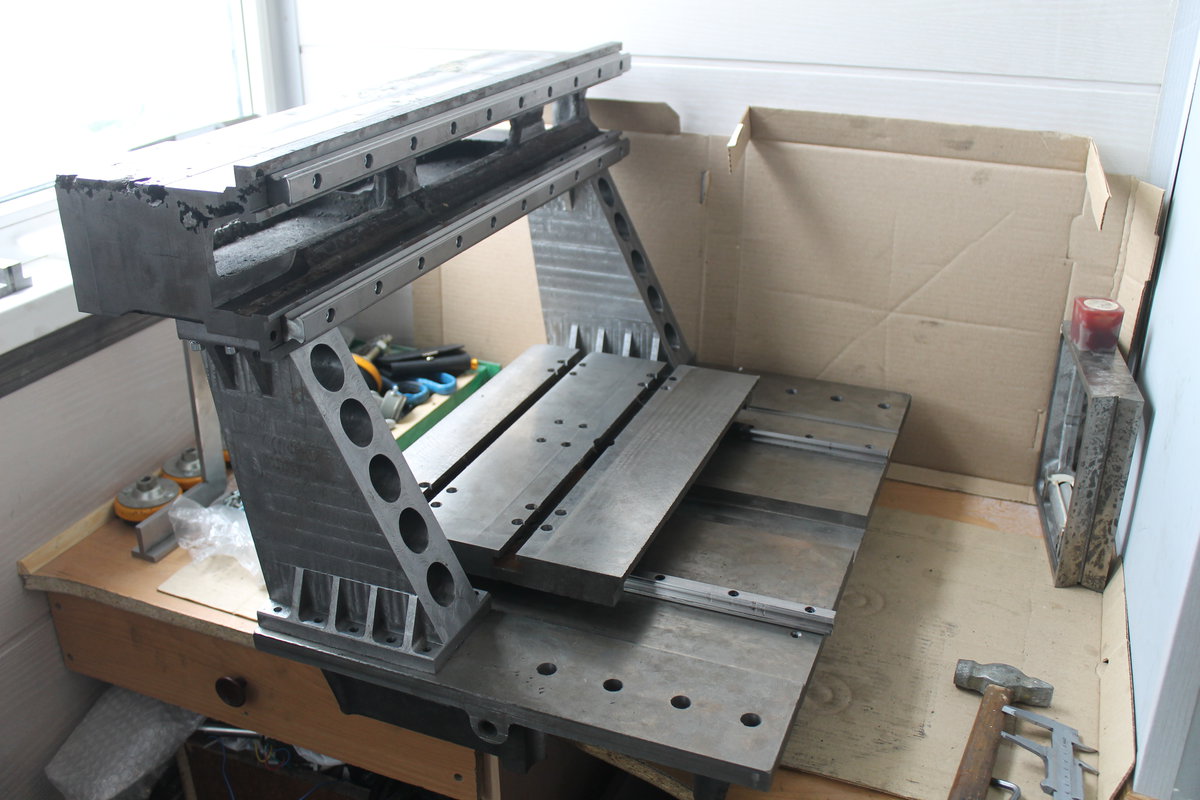 Alexanders писал(а): Полагаю, что на токарной станине надо сфрезеровывать призмы и примерно на их месте располагать рельсы, т.е. станина будет лежать как бы на боку. На колонне Z тоже будут рельсы. Каретки по Y и по Z спиной к спине через переходную плиту.