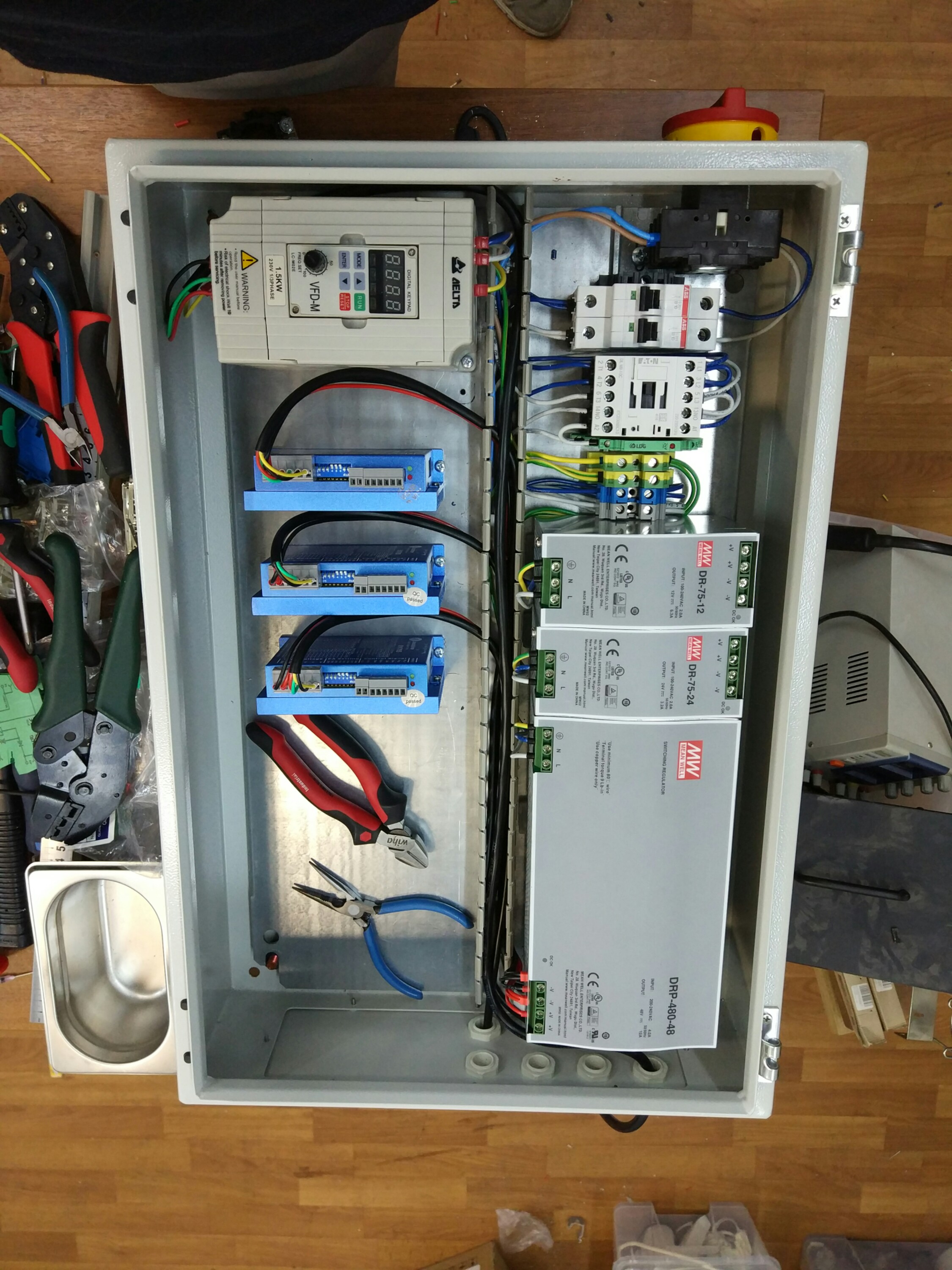 это мой второй в жизни шкаф. а первый который на моем первом станке с сервами там сигналка тоже соплями висит гдето сверху. надо содержимое шкафа в комп пихать а комп в шкаф.