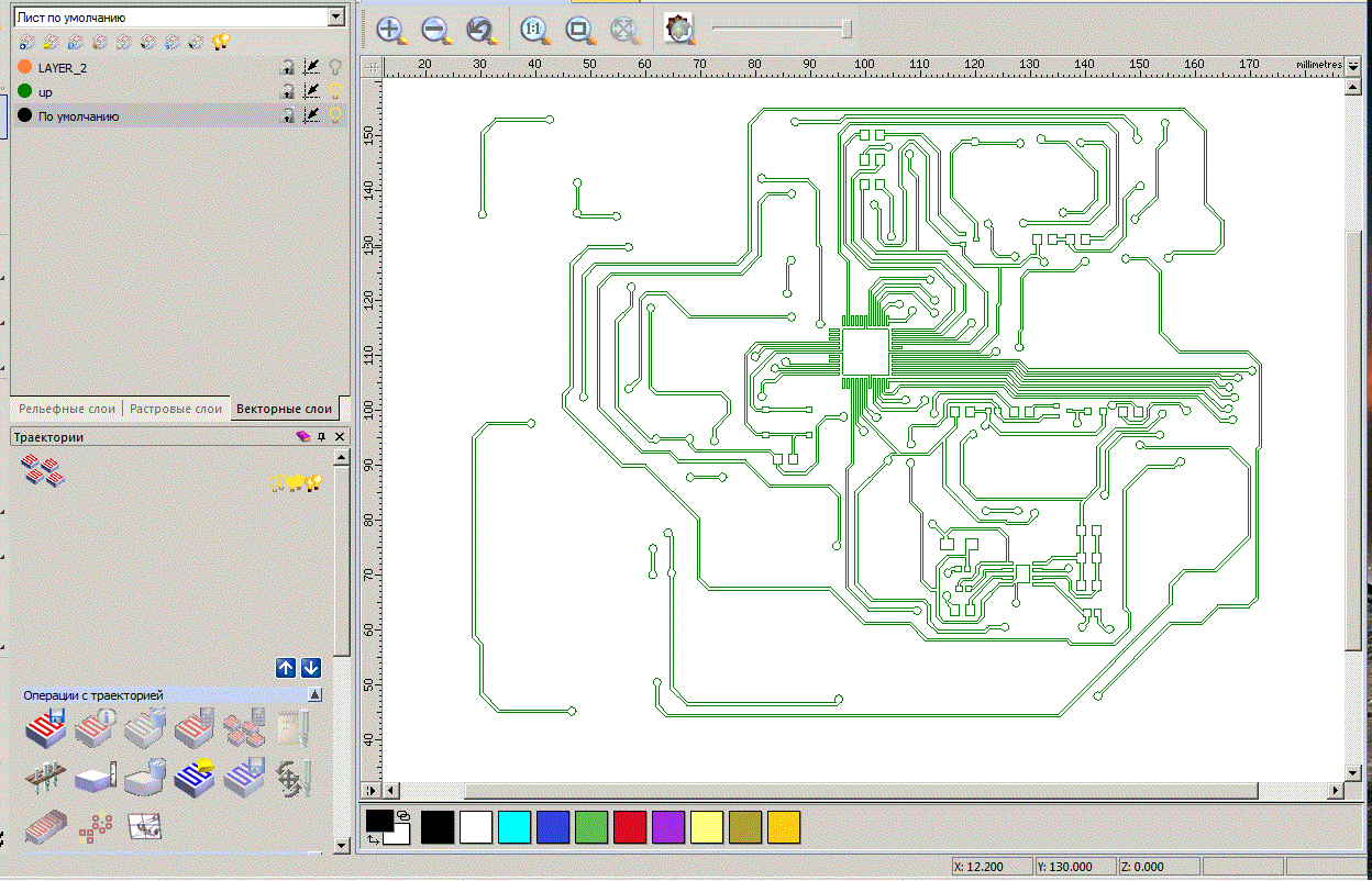 Да, спасибо, Вашу программу я посмотрел. Но мне нужно сделать двухстороннюю плату....делаю это в первый раз, до этого игрался с маленькими через копперкам, не понравилось, сломал все граверы (ну это по неопытности). Вот решил через арткам пойти. Что мне там понравилось: что нарисовано в дип трейсе, то мы и получим в итоге, не просто вокруг дорожек сделаем гравировку, но и уберем лишнюю медь где нам не нужно.