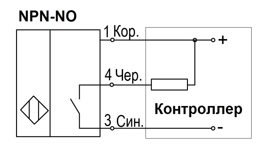 Так у меня так и есть, если замерить тестером между V+ и I3 в нормальном состоянии 3,7 Вольт, когда же подношу метал к датчику напряжение между V+ и I3 полностью пропадает. Не могу понять различие между вашей схемой и моим рисунком, у меня ведь так же коричневый на плюс питание, синий на минус, а чёрный на выход I3.