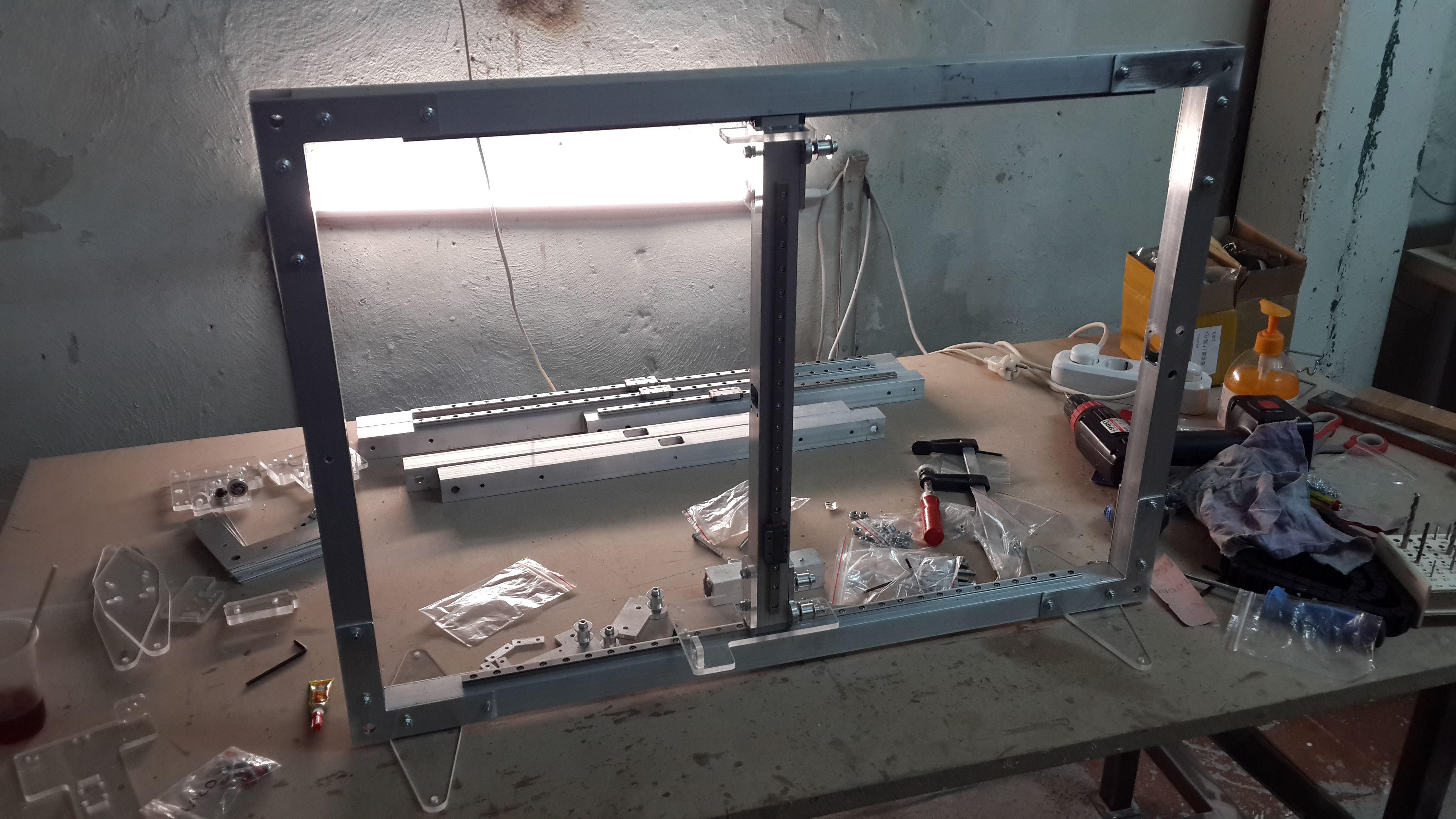 Как и в прошлый раз каркас профиль 30х30х3 но теперь без извратов с самодельными "направляющими". В качестве направляющих китайские рельсы mgn9 стоят не дорого.