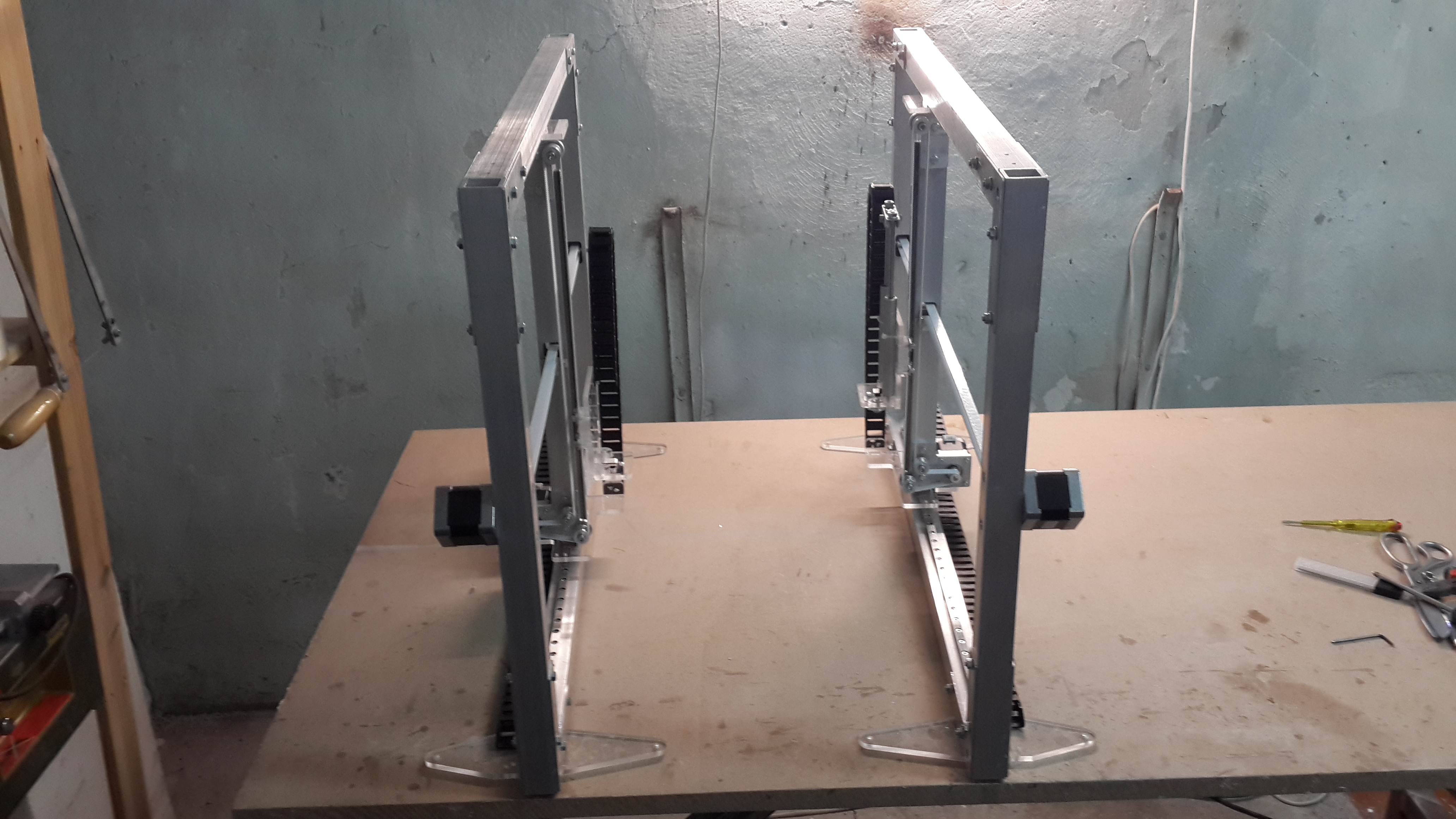 Если застопорить нижнюю каретку то будет перекашивать вертикальную балку. Решение есть, но не в этом проекте.