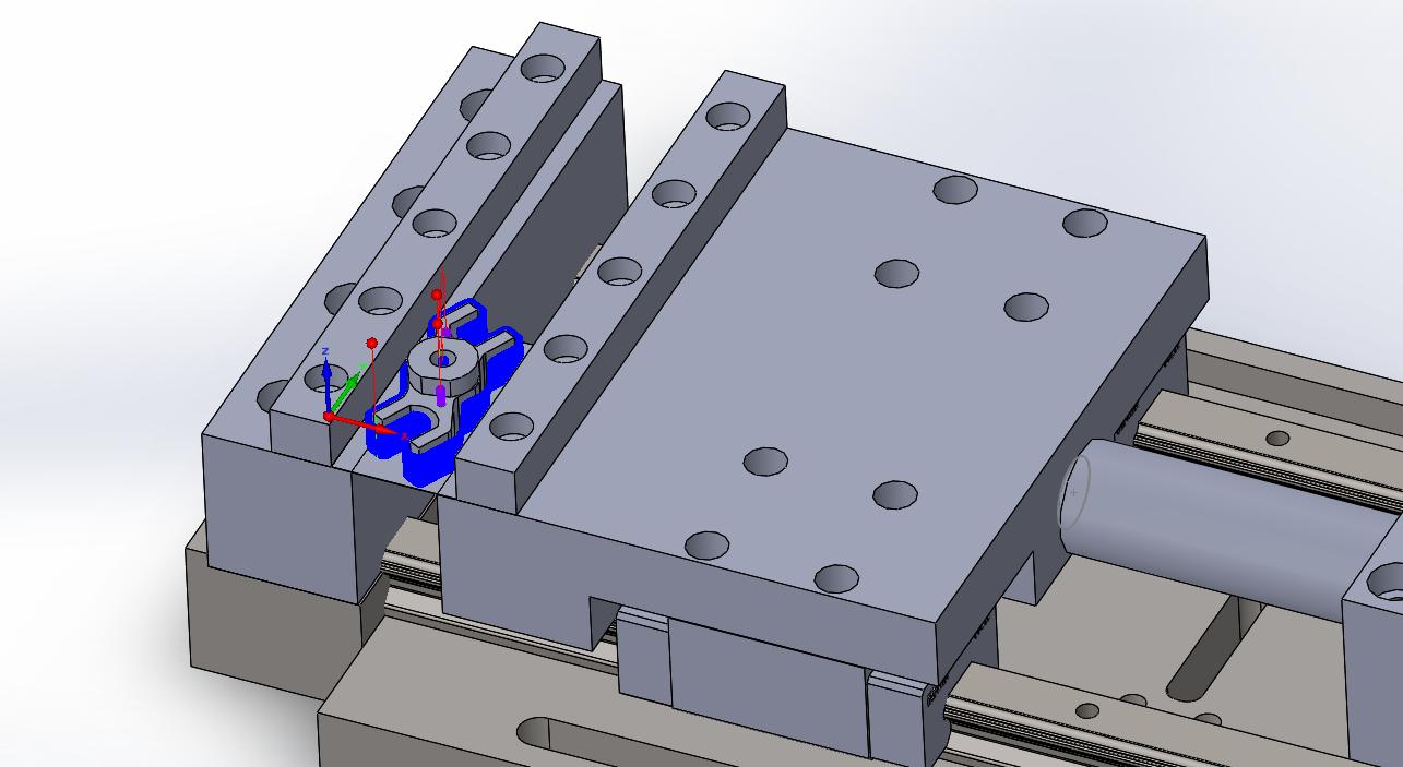 Теперь деталь размещаю в тисках и кам программа учитывая расположение заготовки и ограничений губок, старательно обходит фрезой всё выступающее.