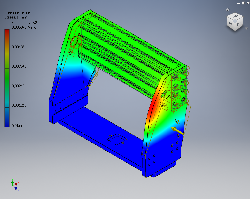 Погнул портал в котором все детали 18 мм толщиной. Другого проекта нет у меня. Нагрузка 500Н - т.е. чуть больше 50 кг.