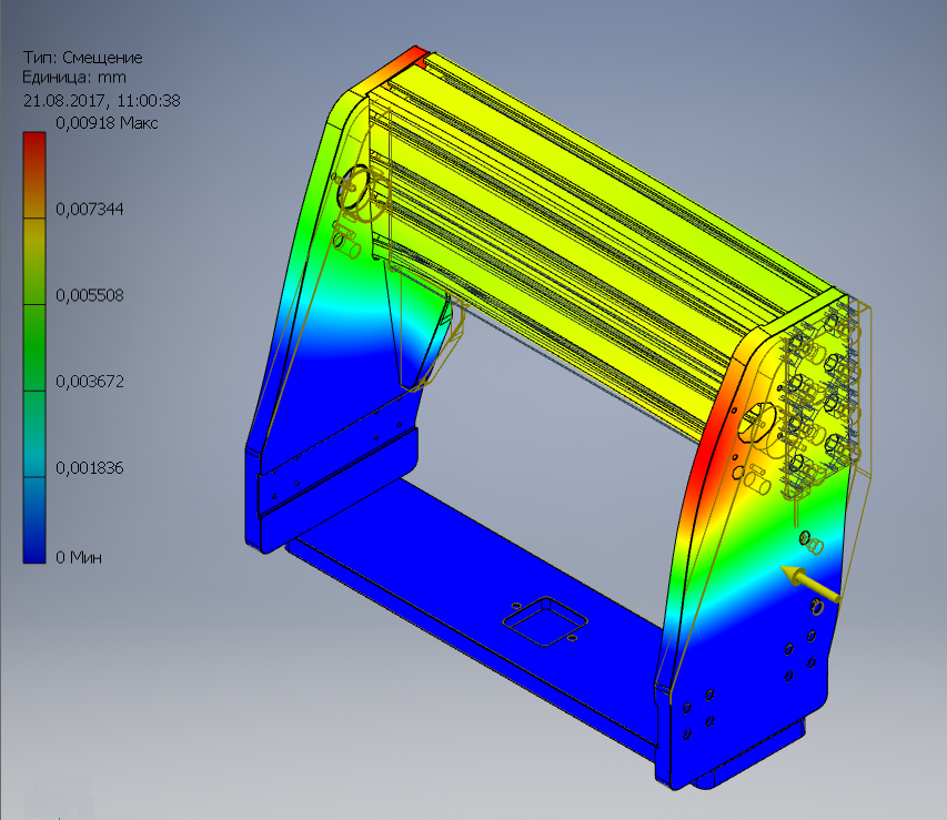 Погнул портал в котором все детали 18 мм толщиной. Другого проекта нет у меня. Нагрузка 500Н - т.е. чуть больше 50 кг.