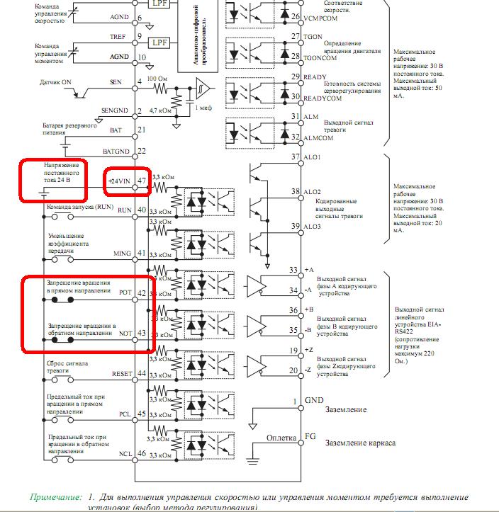 Читаем мануал и там видем что к серве нужно иметь ДОПОЛНИТЕЛЬНЫЙ блок питания на 24вольта для подачи сигналов