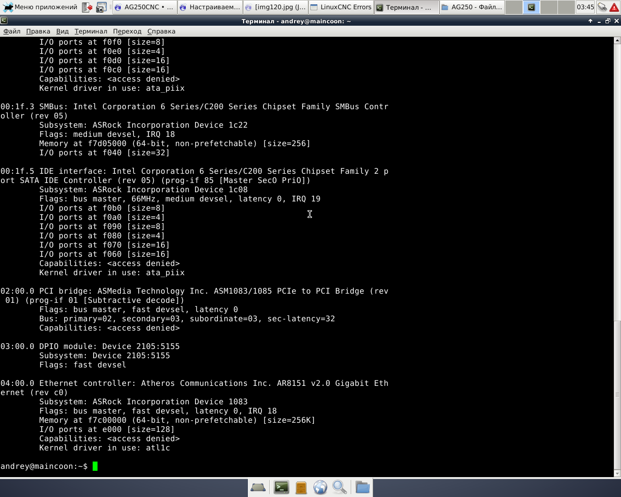 Подскажите. Сегодня включил станок, оси ездили, перемещения осей были видны. Потом произошел какой-то сбой, перестал реагировать на нажатия мыши, оси не ездят, перемещения стоят на нуле. На нажатие кнопки в правом верхнем углу не реагирует. Шпиндель тоже не крутится. Пробовал перезагрузить комп, пару раз ЦНЦ загружался с ошибкой, ошибку не запоминал, что-то про невозможность вставить РТАИ... Потом вроде загрузился ЦНЦ, но все равно не реагирует ни на что. Что делать-то?