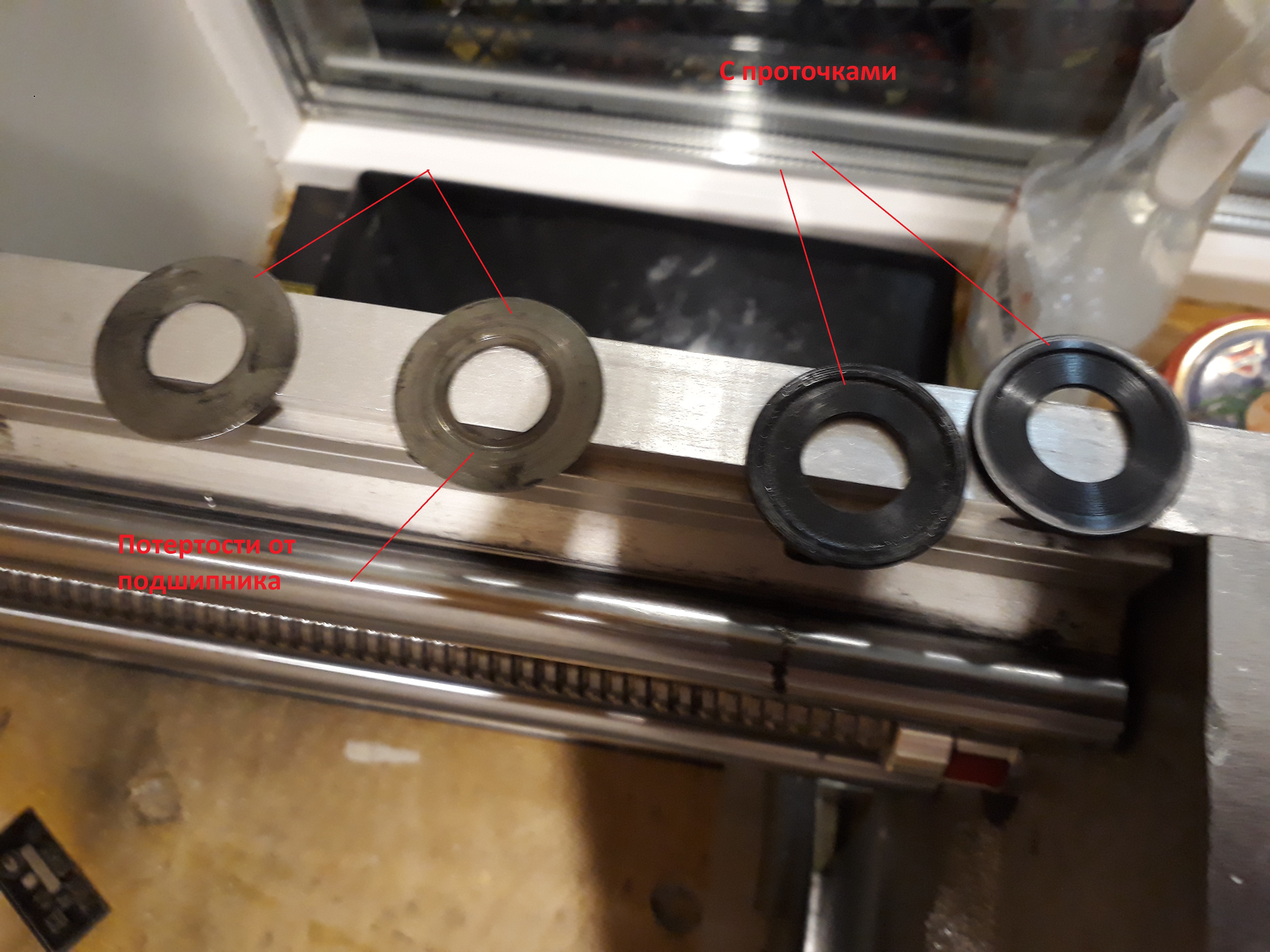 Решил заменить подшипники на шпинделе GDZ-65-800. При разборке обнаружил по две упорных шайбы с проточной и без проточки.