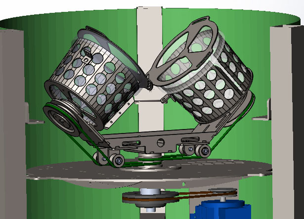 Привод корзин от осн. оси - через круглый полиуретановый ремень.