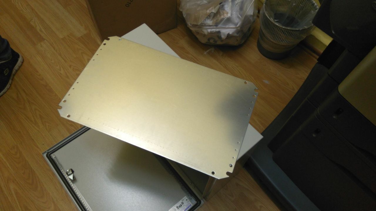Монтажная плита из толстого листа металла, которая ощутимо тяжелая.
