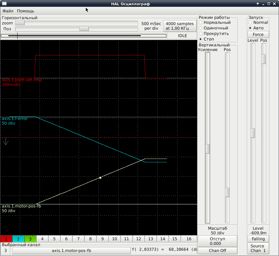 Почитав мануал, а так же советы http://www.cnc-club.ru/forum/viewtopic. ... 4&start=60 , http://www.cnc-club.ru/forum/viewtopic. ... 687#p23687 , http://gnipsel.com/linuxcnc/tuning/servo.html и статьи о PID. Вооружившись HAL-скопом стал настраивать...