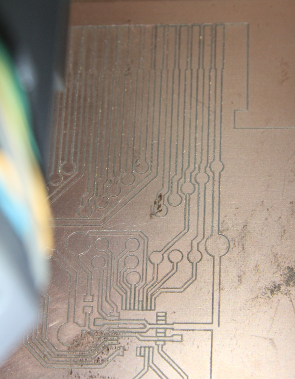 (разница глубины) сначала относил к плохому качеству текстолита, потом понял, что и на хорошем тестолите канавка из примерно 0,12-0,16 мм (фреза 0,1 глубина 0,05) вверх превращается в почти 0,4 вниз (глубина одинаковая).