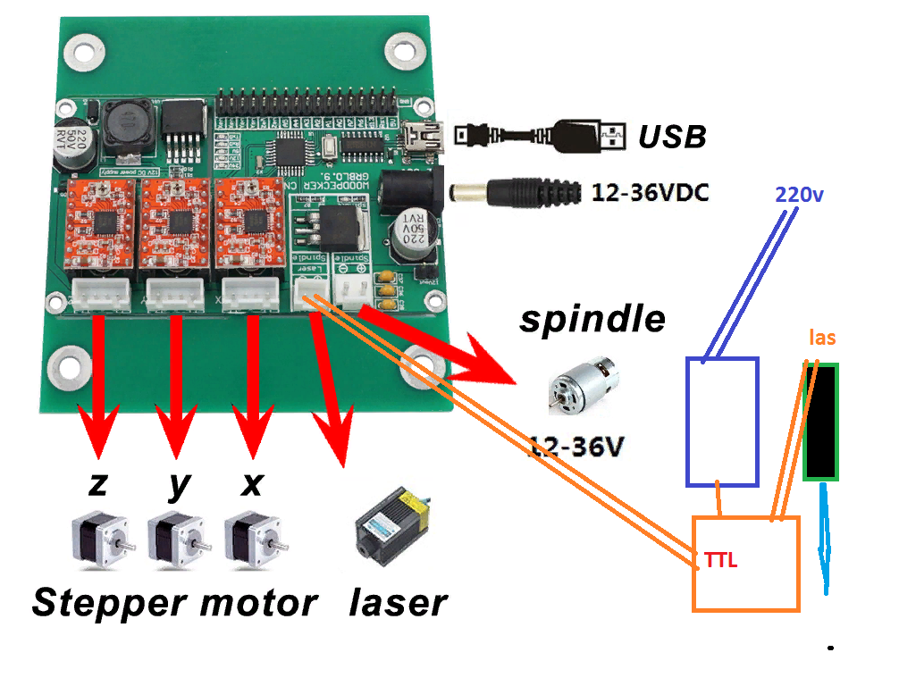 Всем привет! У кого есть информация по подключению к этой плоте лазера 7 -10W с TTL драйвером. Лазер 2.5W в программе LiteFire работает без проблем. Подключаешь его на подписанные клемы и все. А как подключить с драйвером??? В программе LiteFire есть выбор лазера по мощности. Но предел 5.5W, и то думаю, что без ТТЛ.. Китайцы рисовали картинку, но по ней не работает. Лазер светит полной мощностью и не управляется. Драйвер ТТЛ концы замыкал,-- Гаснет. Кто посоветует, как заставить его работать.