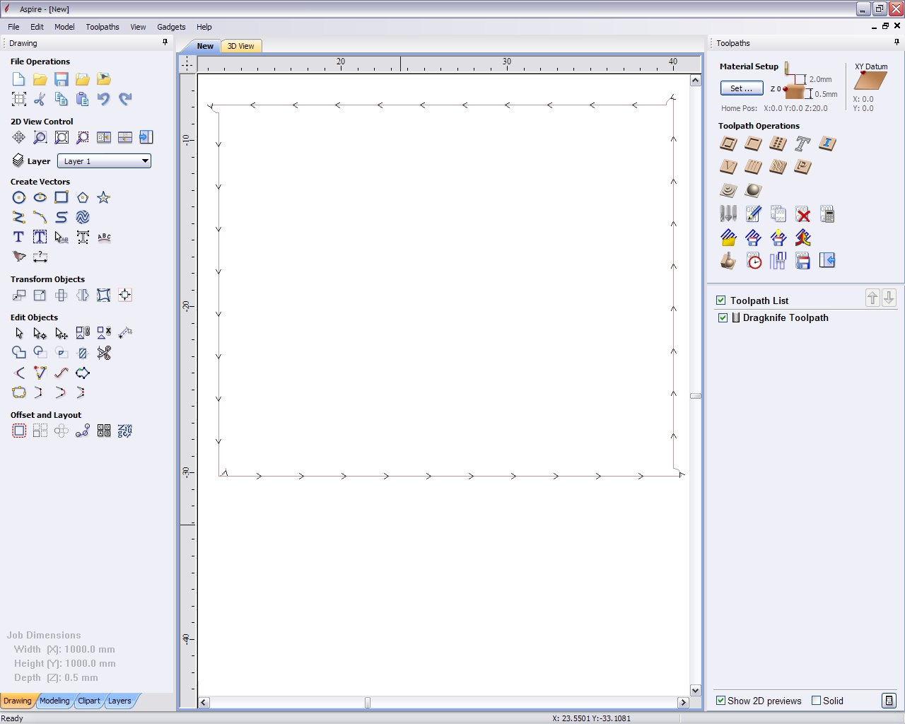 Почему это не подойдет? Все подойдет. Вот пример траекторий для вырезания прямоугольника, одна создана в Aspire, другая с использованием Python-скрипта: