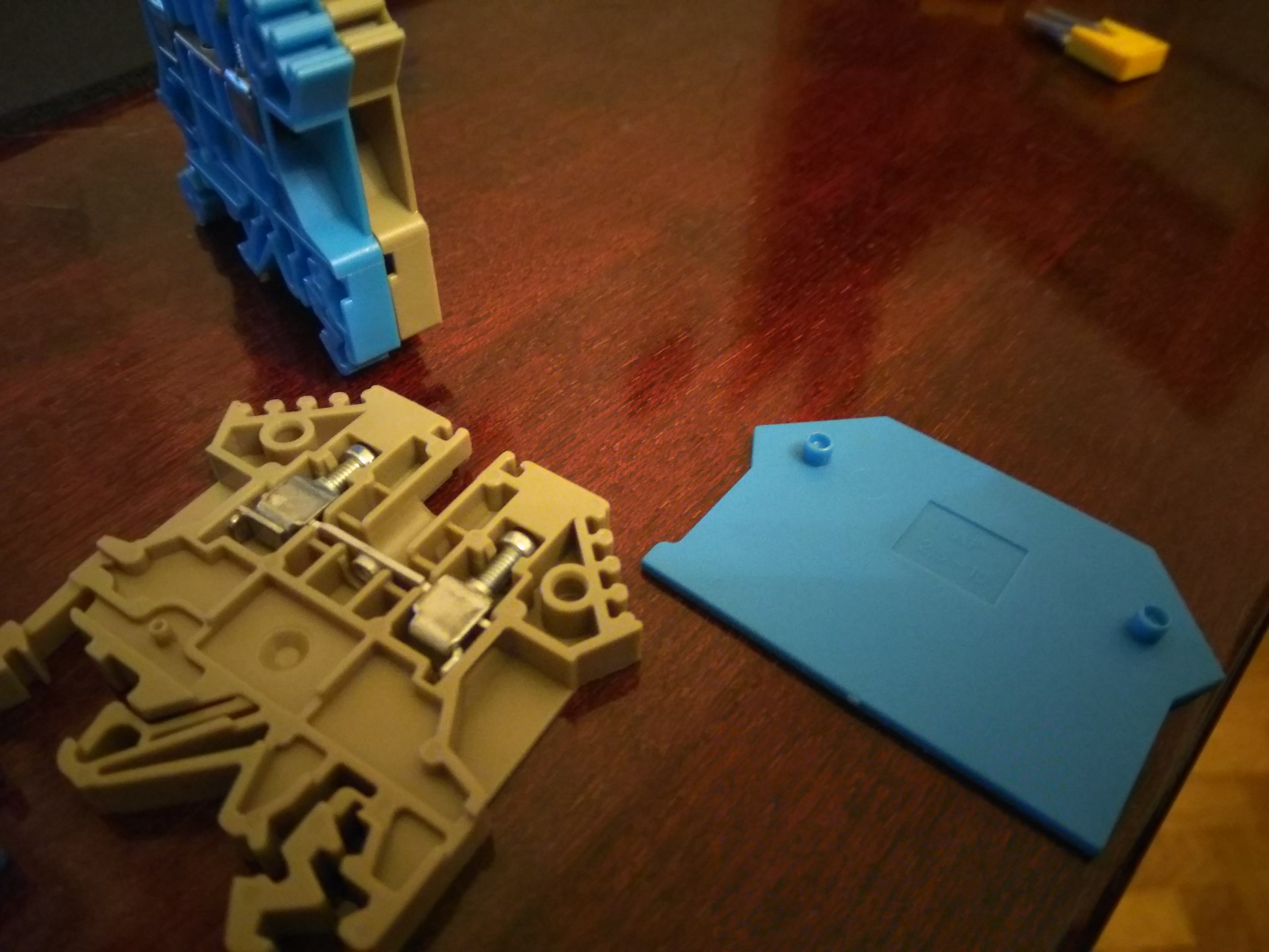 зы: на всякий случай - вот те которые "желто-зеленые" - они имеют контакт зацепленный на крепеж к дин-рейке.. они "земляные". обращаю внимание на всякий случай, потому как видел как их использовали в виде обычных терминалов, а потом сильно удивлялись что нифига не включается, и автомат выбивает...