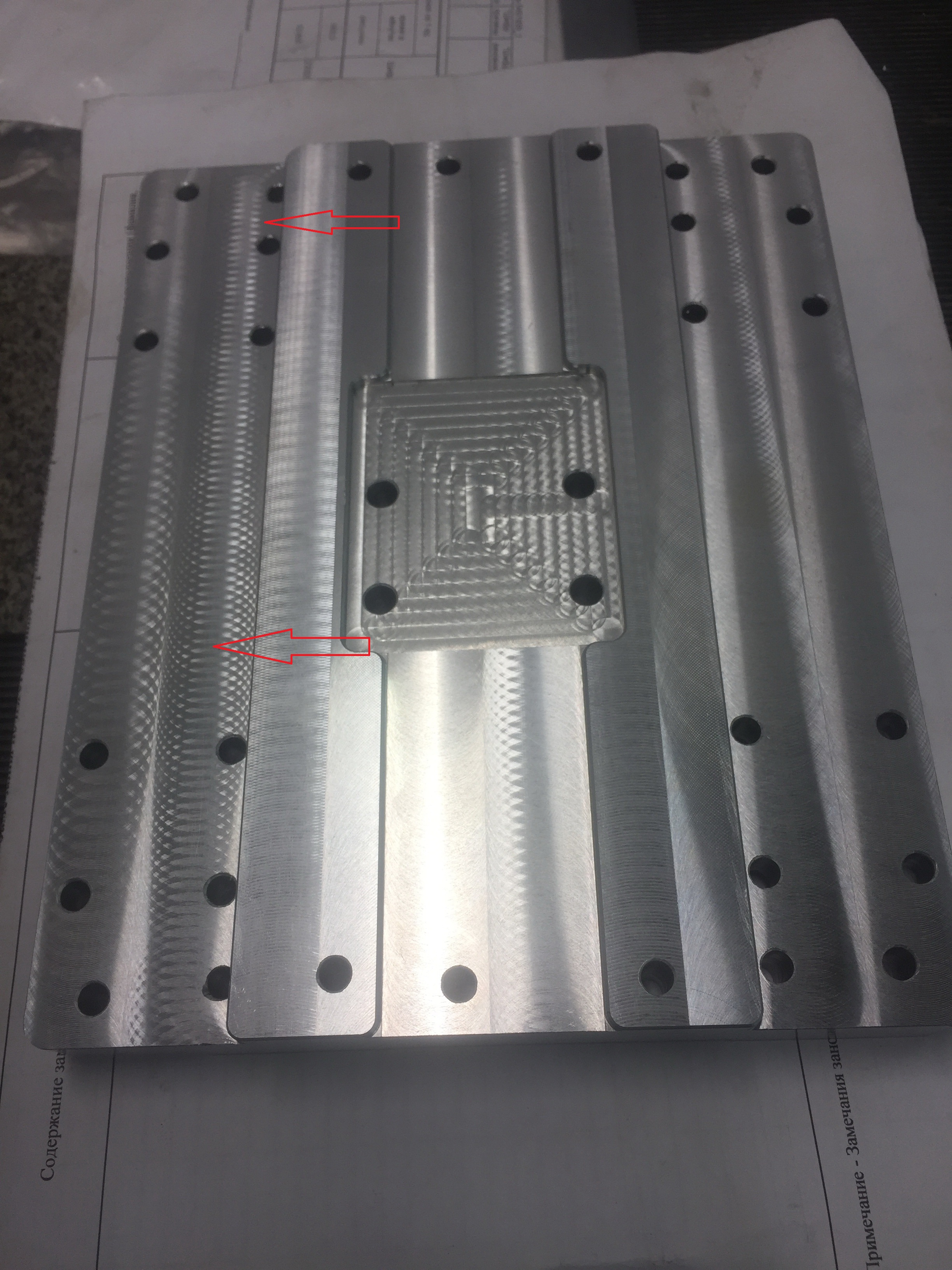 Нашел пробную железяку после старой фрезы. Вот как мой тупой рисует. Это железо, по аллюминию также рисует