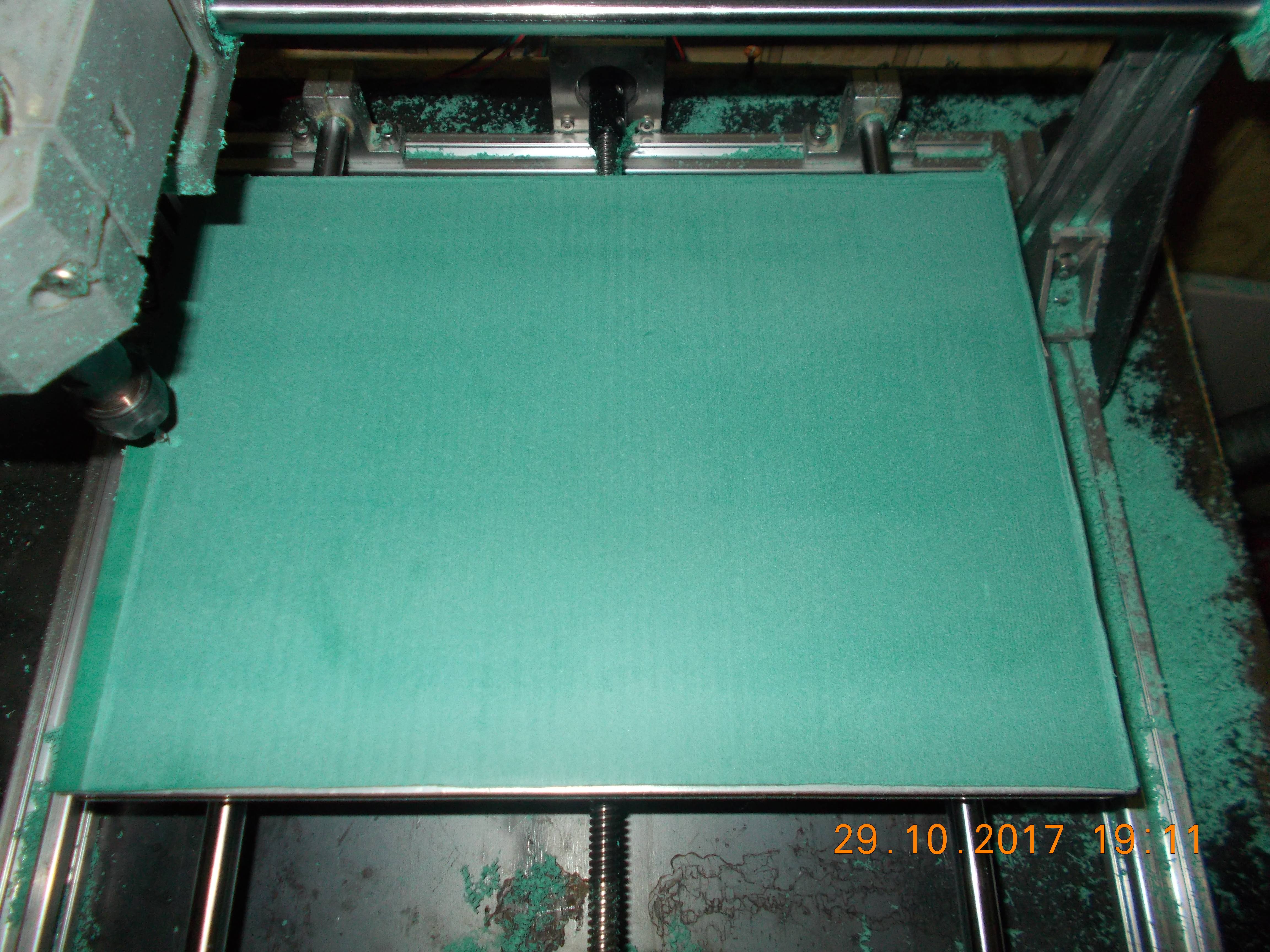 Правка: После выравнивания стола ребристости не ощущается стол идеально ровный. Скорость подачи 1500мм/м, обороты 12000 об/м, глубина врезки 0.25 мм, шаг 0.47 мм, так что можно сказать что особого биения и люфта нет.