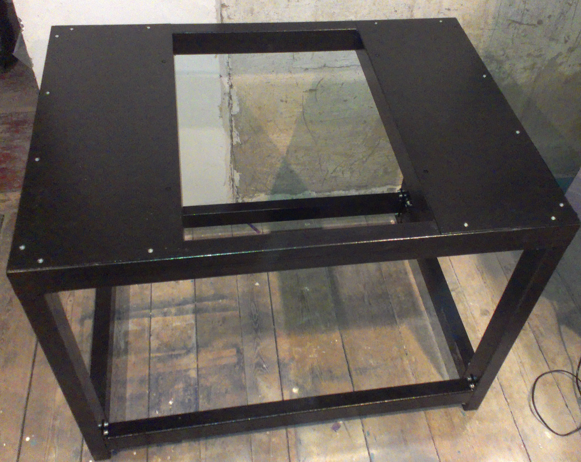 подставка под станок, посередине уже повесил ящик для сбора опилок на шариковых направляющих.