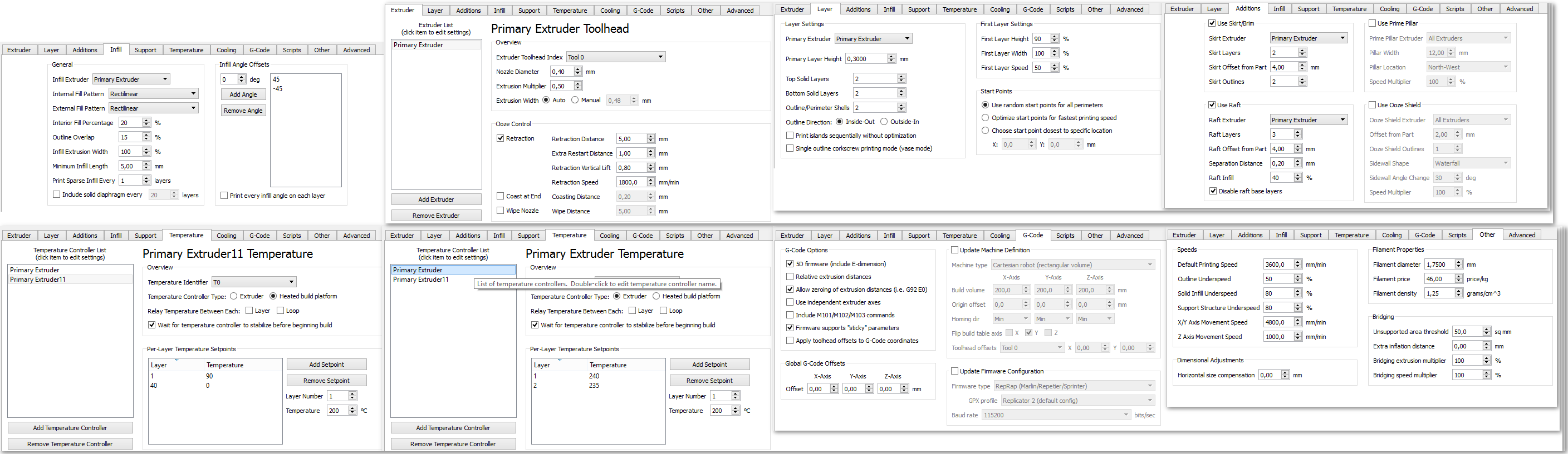 3. Почему во вкладке Extruder параметр Extrusion Multiplier стоит 0.5, когда нормальное значение там - 1.0 с возможными отклонениями по результатам тестов максимум +-0.2?