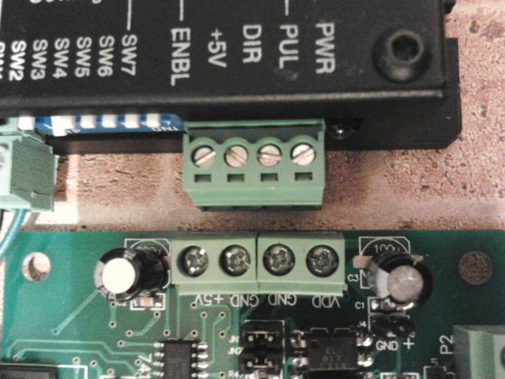 Забей. Топикстартеру надо всего лишь собрать стабилизатор +5 В, что делается элементарно на 7805 микрухе и одном кондере, и скорее всего просто соединить вместе одноименные выходы контроллера (Step, Dir, Enable) с одноименными входами драйверов, на +5 подать именно +5, тем более что в любом случае +5 должно быть заведено на драйверы. Я просто подумал вначале, что твой вопрос по сопряжению никак не связан с первым постом. Схема, тобой приведенная, скорее всего "левая". И вообще неработоспособная при +5 В. Ссылку на инглише можешь кинуть на сайт производителя драйверов и контроллера? Одна фирма? Я посмотрю доки, тогда точнее скажу.Nick писал(а):Лично я ничего не понялRafiq писал(а):То, что в жирном черном прямоугольнике, я так понимаю, входные цепи драйвера? Тогда можно больше +5 подать, важно, чтобы не был превышен ток. Но я сделал бы по классической схеме управление оптронами, контур тока такой: Питание - Резистор 270 Ом - Диод оптрона - дополнительный резистор R - Ключ с открытым стоком (или коллектором) - Земля (схему рисовать лень, но я думаю ты понял), для меня все эти слова это что-то космическое.