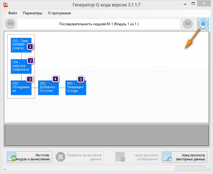 В нем нажимаем кнопку №1, и получаем все траектории из предыдущих модулей.