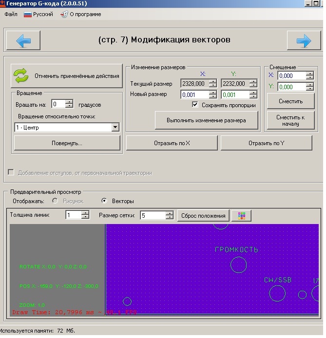 А дальше засада - программа (51v) увеличивает размер рисунка после скелетизации и дальнейшего создания G-кода раз в 10 !!!!!